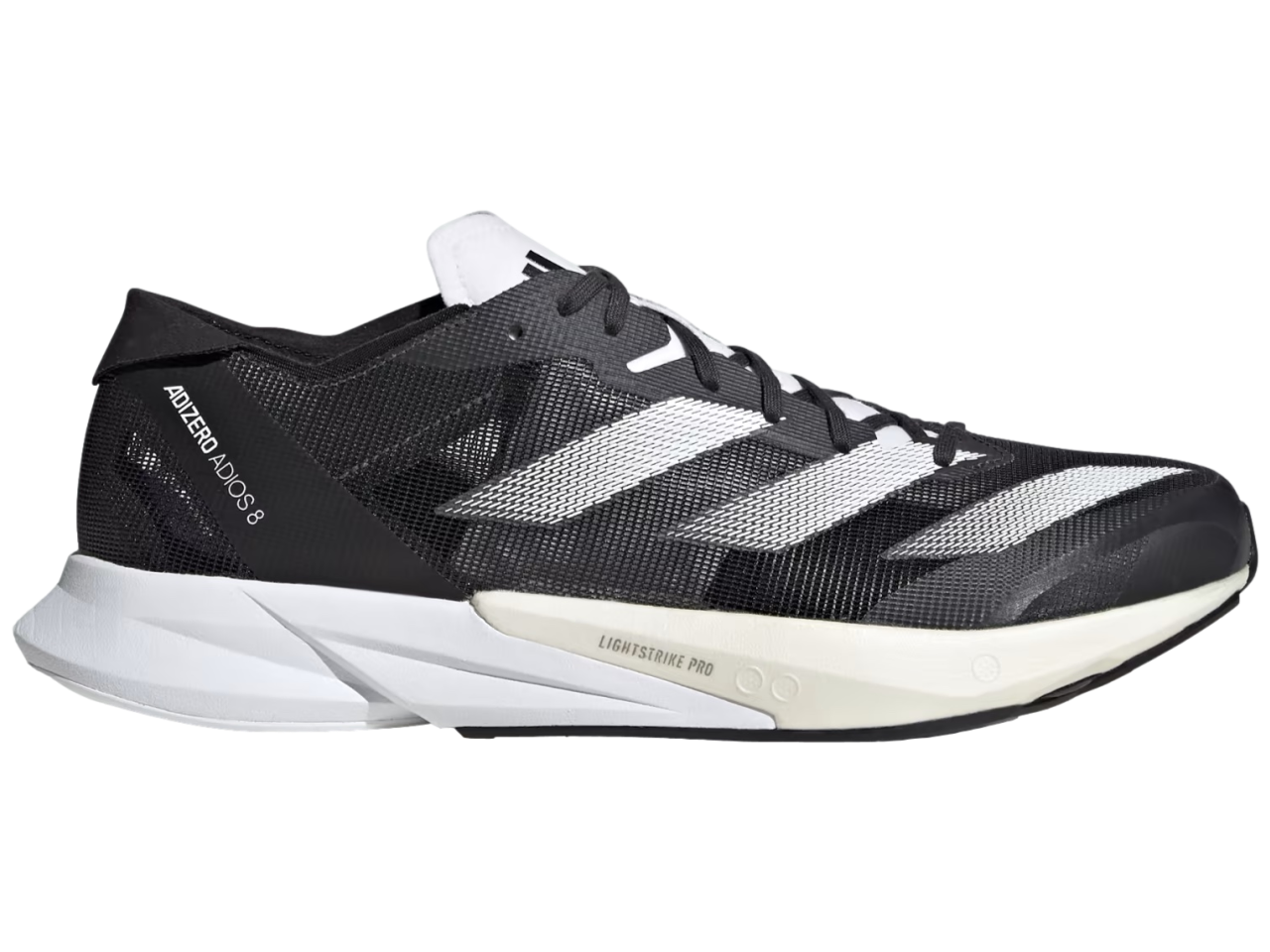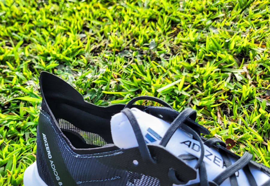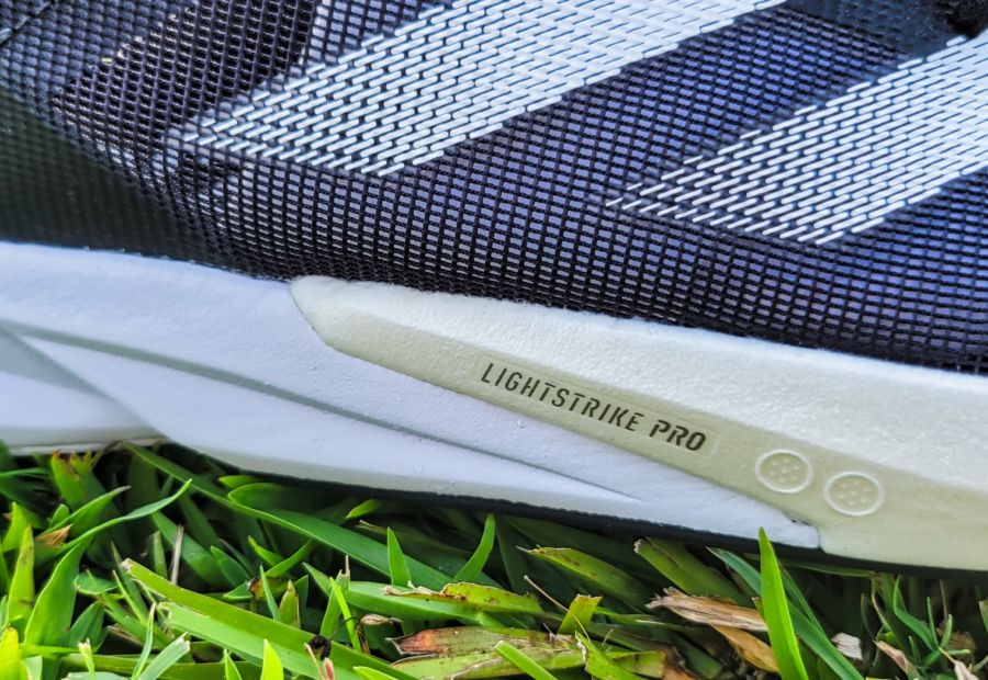 The Adios 8 uses a combination of Lightstrike Pro and Lightstrike 2.0 in the midsole to try to give you a combination of light cushioning and springiness on your toe-off.