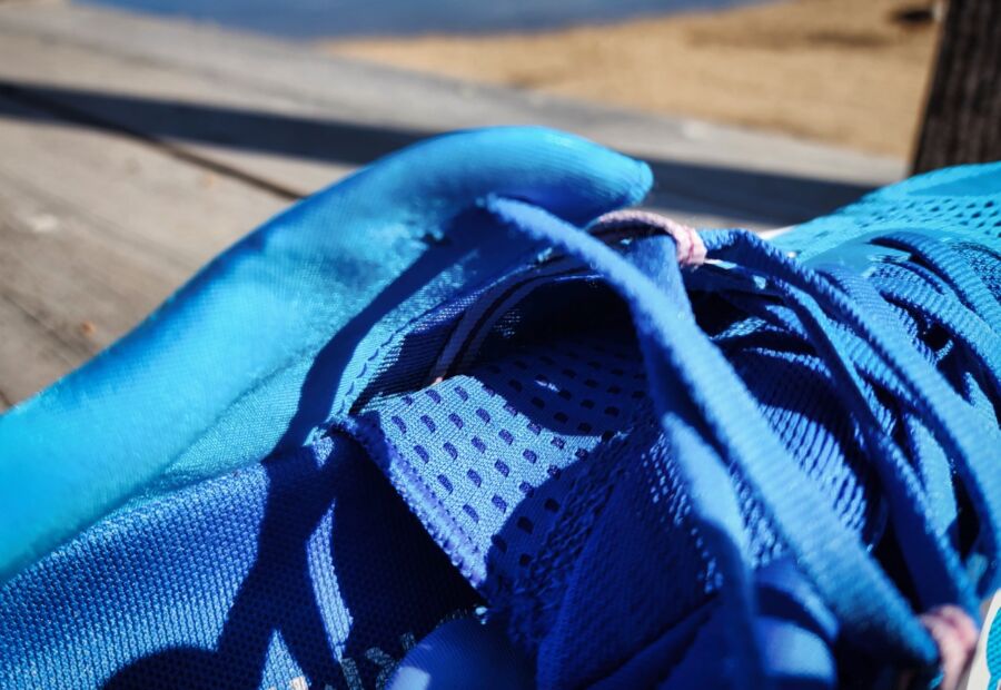 Without this the shoe would get warm given it’s sturdy, reinforced construction and partially gusseted tongue. Perforated, flexible material attaches both sides of the tongue to the base.